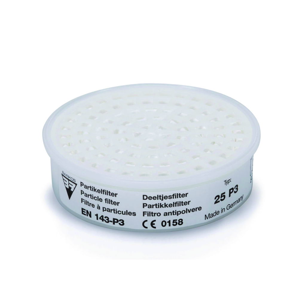 Entsprechend EN 143 / EN 14387, CE zertifiziert. Die Steckfilter werden über eine Filteraufnahme mit der Maske verbunden. Die Filteraufnahme verfügt über den Rundgewindeanschluss nach EN 148-1. Die Partikelfilter bestehen aus einem leichten PE-Gehäuse mit eingearbeitetem Glasfaserfilter. Die besondere Faltung bietet eine große Filterfläche auf engem Raum. Der Vorfilter fängt grobe Farbnebel und Stäube auf, verhindert eine zu schnelle Verschmutzung des Atemfilters und verlängert dadurch dessen Standzeit. Er ist sehr einfach zu wechseln, da er in die Vorkammer der Filteraufnahme eingelegt wird. Er ist schwer entflammbar.