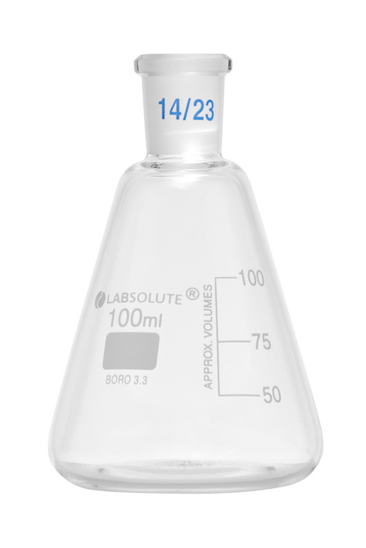 Erlenmeyerkolben, mit Normschliff, Borosilikatglas 3.3, mit dauerhafter, aufgedruckter Volumenskala, 100 ml, NS 14/23, gemäß DIN EN ISO 4797, VE=1, LABSOLUTE®, 1 Stück