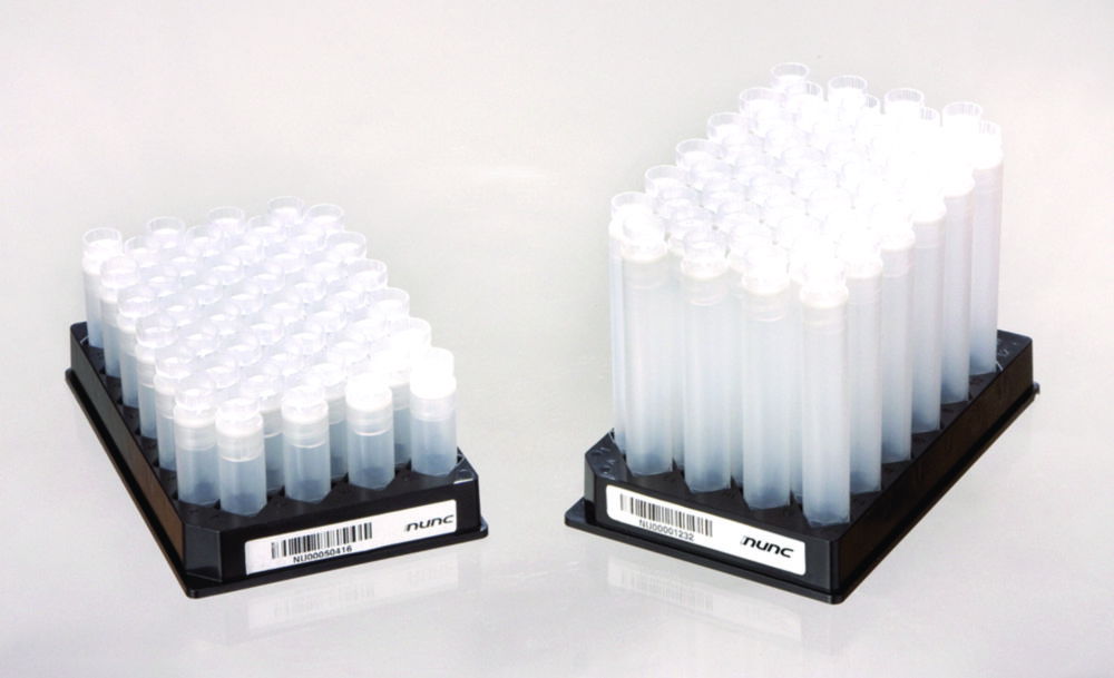 • Das 2,0 ml Röhrchen besitzt dieselbe Höhe wie 1,8 ml Nunc™ KryoTube Standardröhrchen, geeignet für alle gängigen Racks und Kryoboxen für Tiefkühllagergeräte