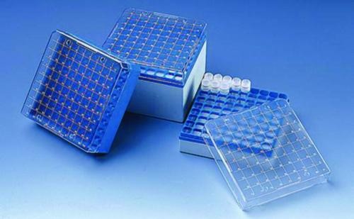 Lagerbox, PC, f. Kryoröhrchen, stapelbarfür 1,2 und 2 ml, blau, für 81 Röhrchentemperaturbeständig bis -196°C, dampf-sterilisierbeständig (121°C), 1 Stück