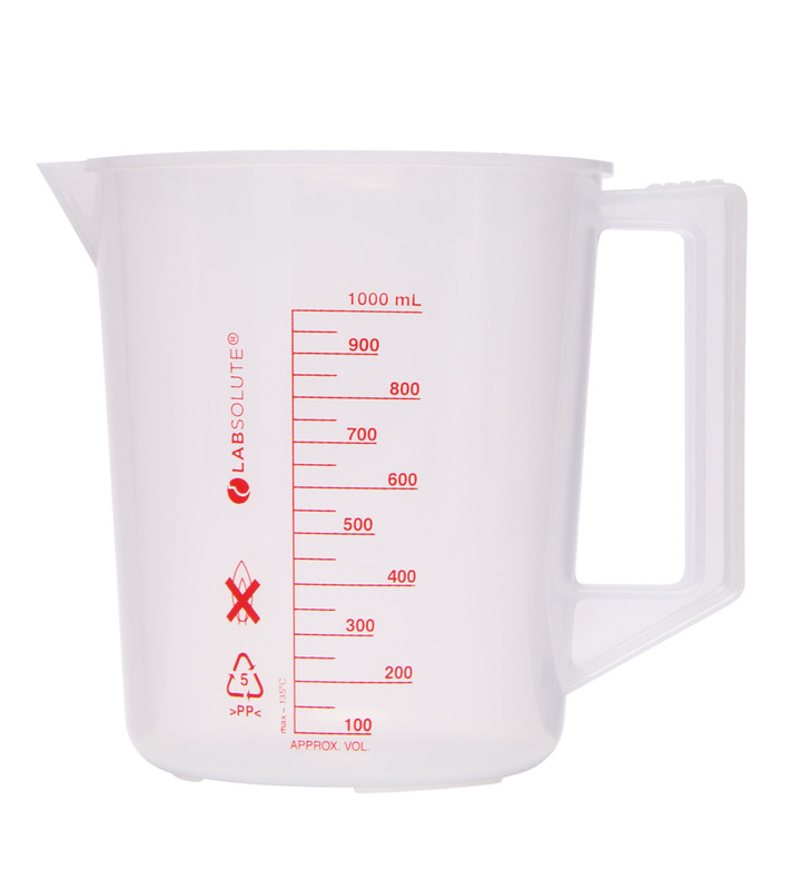 Messbecher, PP, 2000 ml, gemäß ISO 7056, geschlossener, stabiler Griff, rote Skala, praktischer Ausguss, VE=1, LABSOLUTE®, 1 Stück