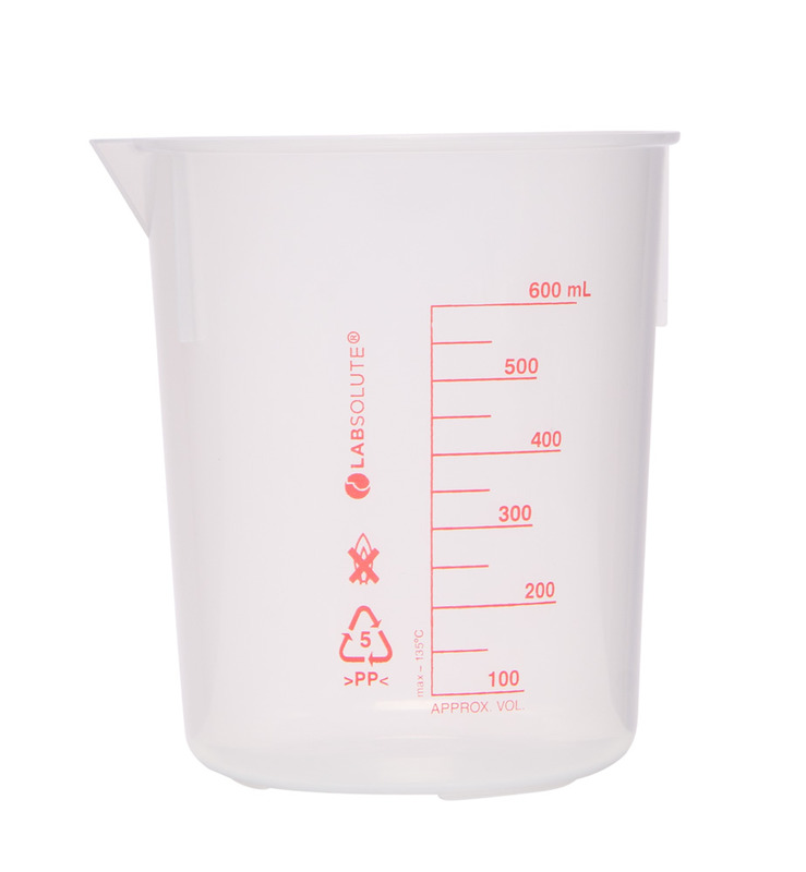 Messbecher ohne Griff (Griffinbecher), 600,ml, aus PP, gemäß ISO 7056, rote Skala,VE=1, LABSOLUTE®, 1 Stück