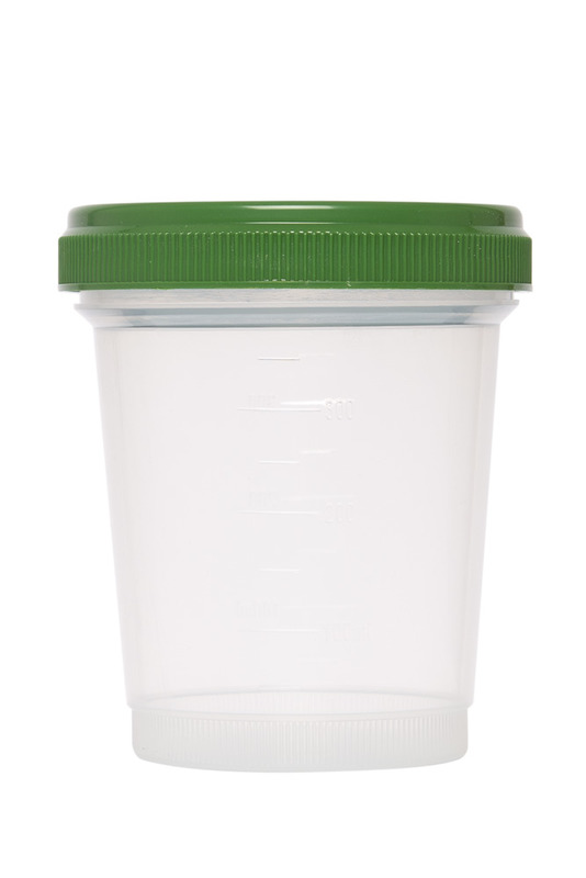Probenbecher, PP, 500 ml, mit grünem,Schraubdeckel, mit Graduierung bis 350 ml,unsteril,VE=132 Stück, LABSOLUTE®, 132 Stück