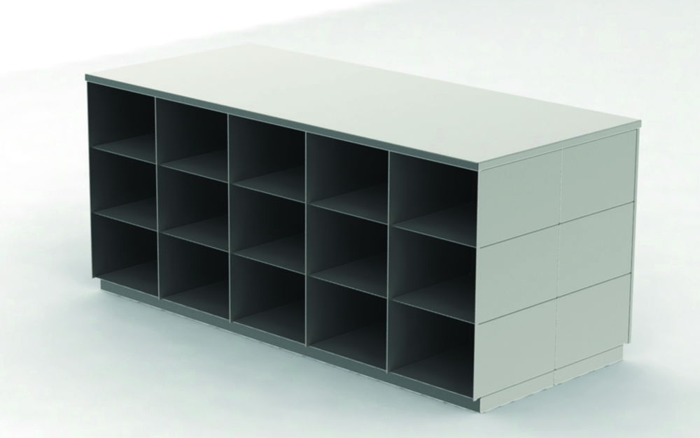 Sit-Over-Bench consisting of seating area, compartments for shoes and plinth