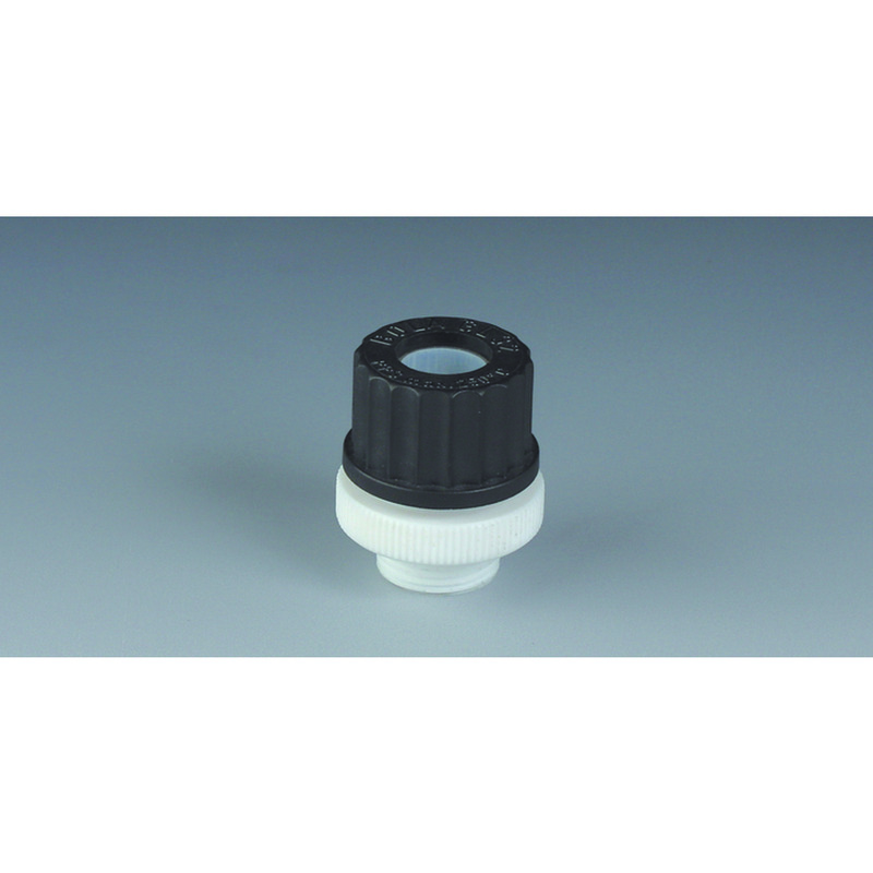 Bestehend aus einem Grundkörper aus PTFE passend für Innengewinde R 3/4 , mit Kappengewinde GL 32, PTFE/Silikon-Dichtung, austauschbarer Filter-Membrane (Porengröße 2,5 µm) aus PTFE, Schraubkappe aus PPS. Hohe chemische Beständigkeit, das Medium kommt nur mit PTFE in Berührung. Druckausgleich ab 0,1 bar Differenzdruck. Maximale Durchflussleistung: » bei 0,5 bar Differenzdruck: 80 l/h » bei 1,0 bar Differenzdruck: 320 l/h, Abmessungen: R3/4, Membran-Außen-Ø mm 29, Membranstärke ca. mm 0,2, Kappengewinde GL 32