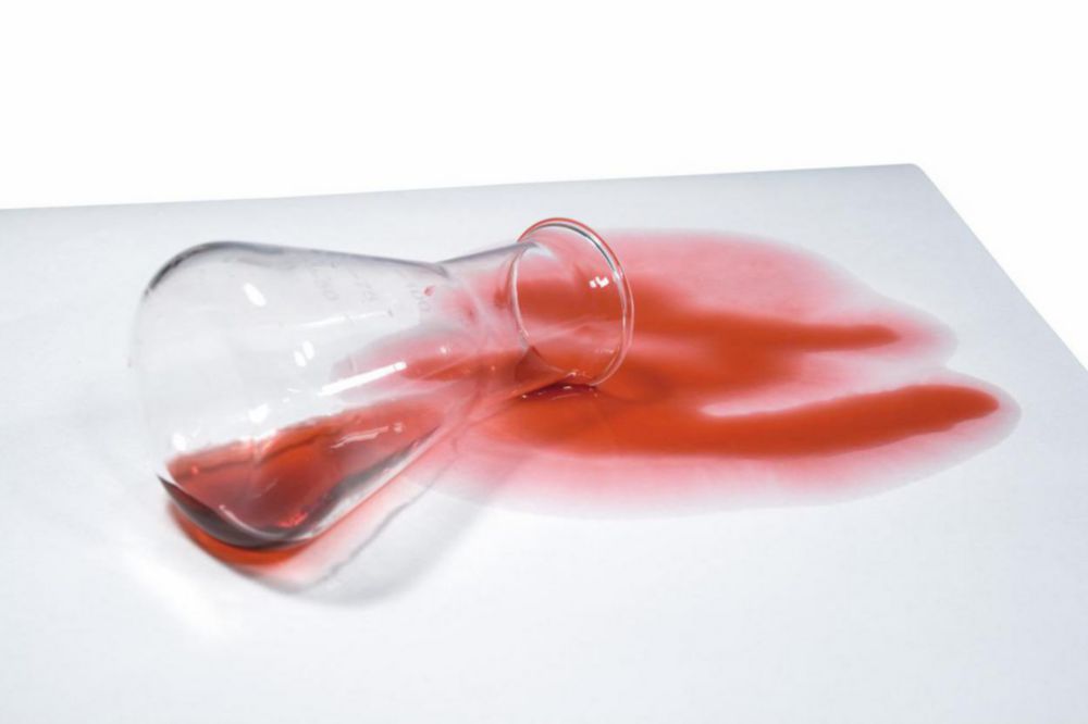 The absorbent paper is coated with polyethylene on one side. Liquids are effectively absorbed and can be disposed with the paper, the surface under the paper stays clean.