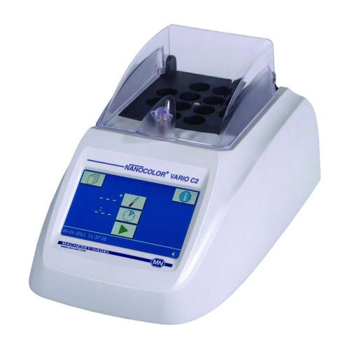 Thermoblock NANOCOLOR VARIO C2 12 Bohrungen für Rundküvetten 16 mm AD, inkl. Netzkabel, klappbarer Schutzhaube, Handbuch, Datenkabel und Software-DVD